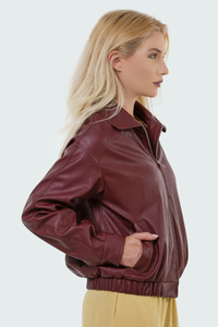 Supple matte faux-leather blouson with a clean zip front, fold-down collar, and elasticated hem for an easy relaxed shape.