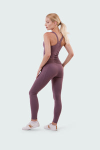 A performance-ready activewear set featuring a supportive V-neck tank and high-waisted leggings, designed for flexibility, comfort, and style in both training and casual settings.