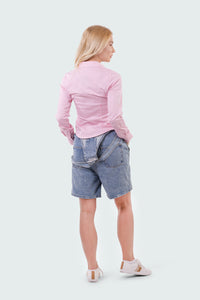 • Slim fit with side shaping darts and curved hem • Stitched collar with moderate spread • Flat side seams with high-tensile stitching; double-needle armhole finish