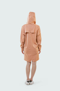 Fully waterproof matte raincoat with welded seams, adjustable hood, and fishtail back for enhanced coverage.